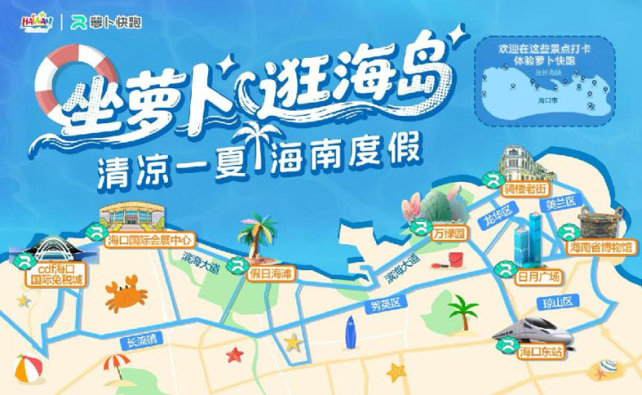 据悉,7月10日-9月30日,海南省旅文厅联合萝卜快跑,为广大市民游客准备了专属科技福利,扫码即可领取萝卜快跑交旅观光车体验券,解锁与众不同的海口之旅,开启智能椰城探索。